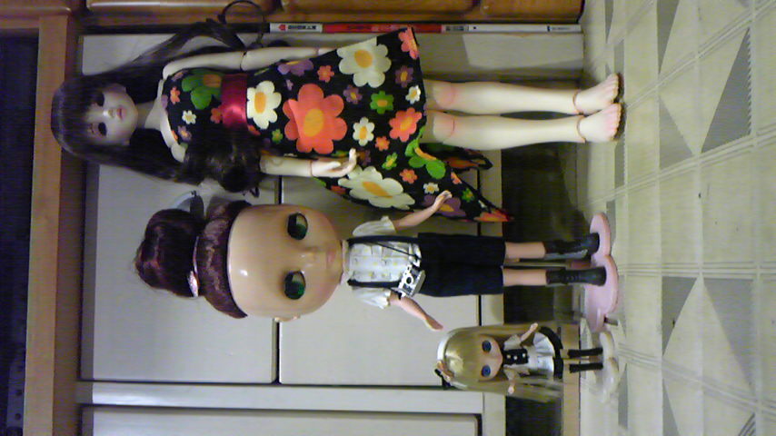 画像はパピコ顔アップ(眉毛は分かってますから~…)と、プチブラとブライスと大きさ比較。