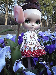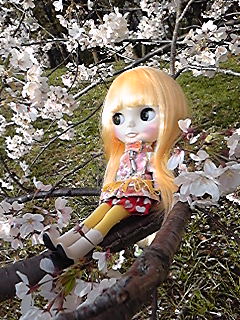 ブライス写真は、ネコキチがめっちゃ器用に花の上や桜の木の上にブライスを置いてくれたので、良い写真が沢山撮れました(*^∀^*)