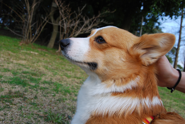 お散歩中のコーギーと出会いました☆